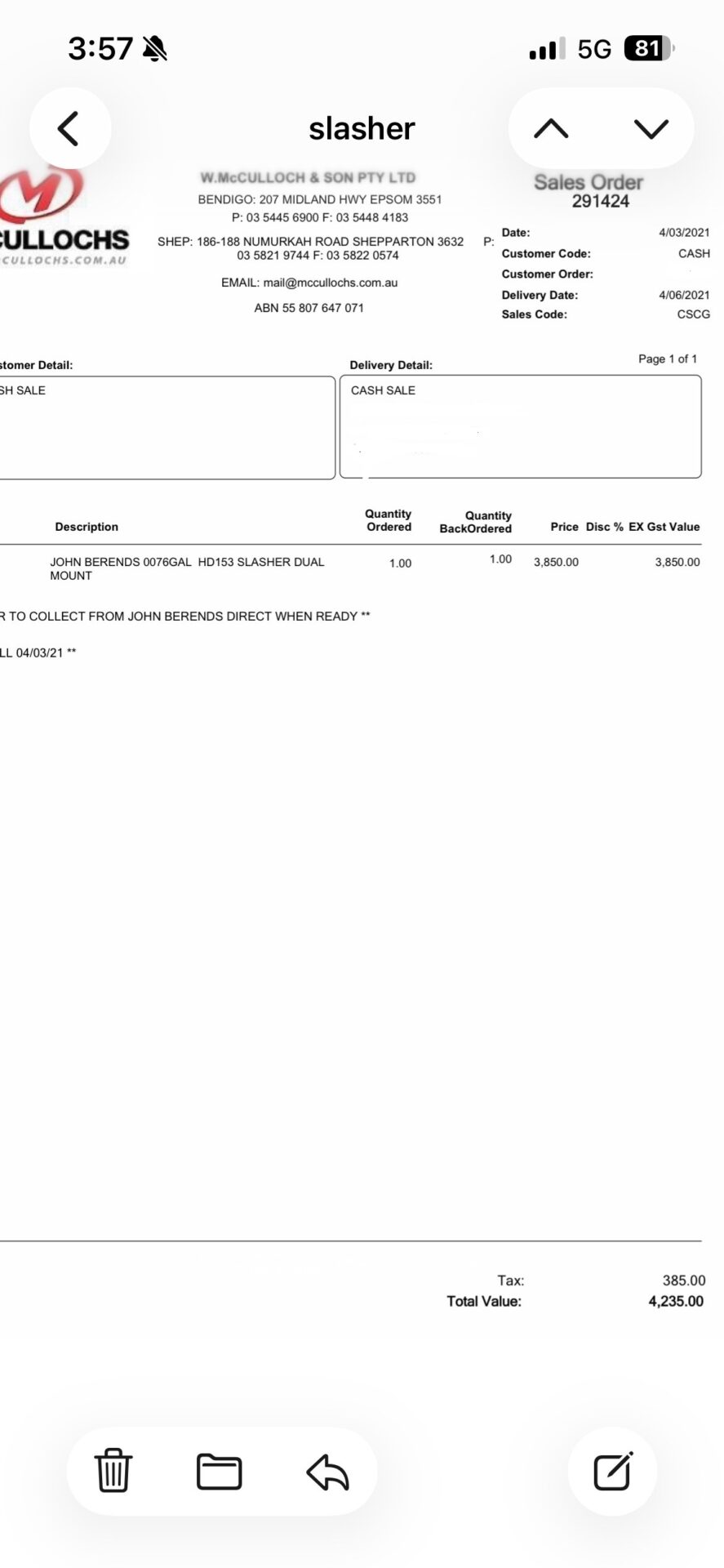 This item is located in our facility in Melbourne, for further information please contact Jason Todd on 0400 321 919 or Chris Caporale on 0499 178 746.