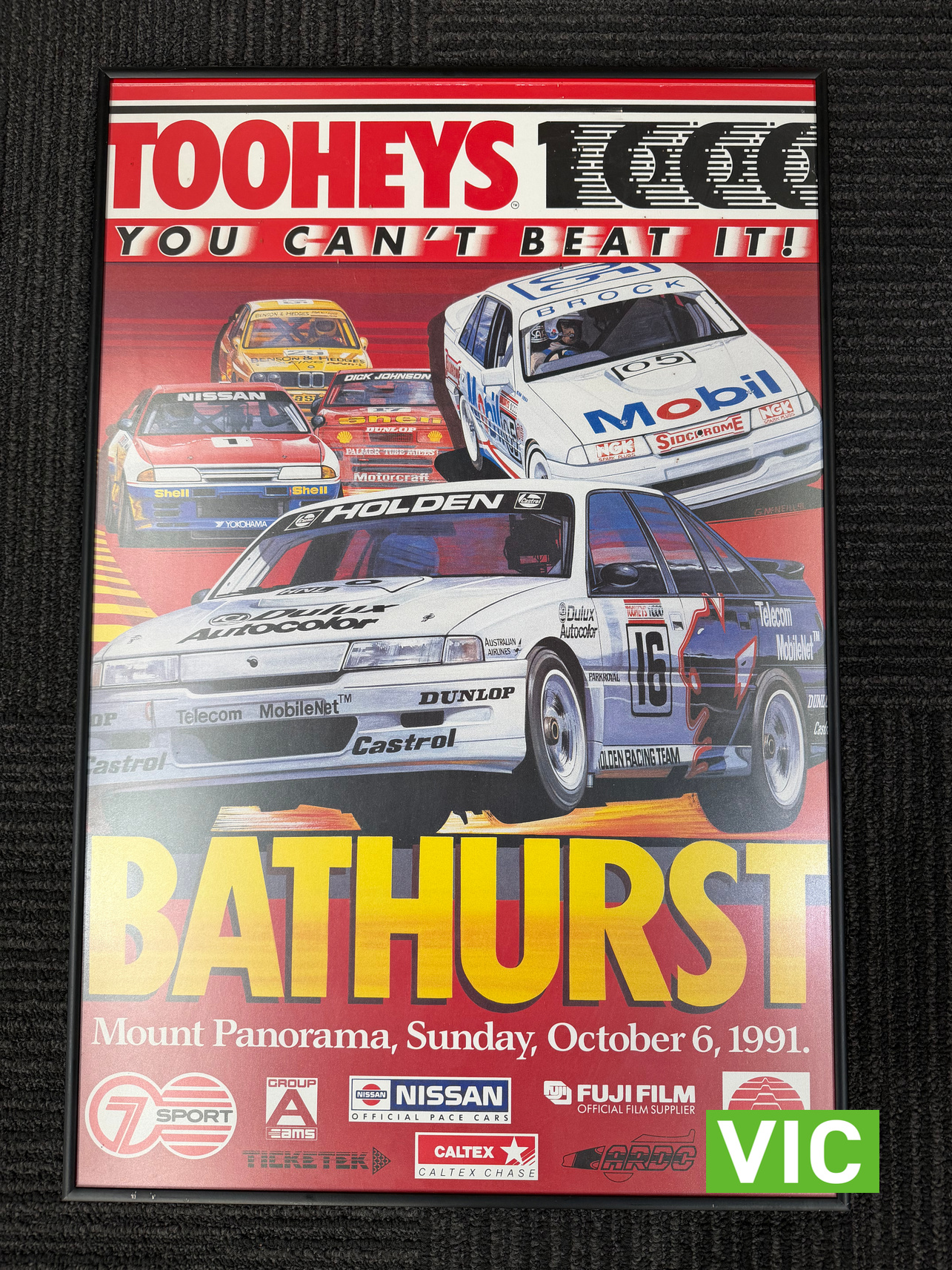 Original Framed Toohey’s 1000 Bathurst ‘Mount Panorama’ 1991 Poster.