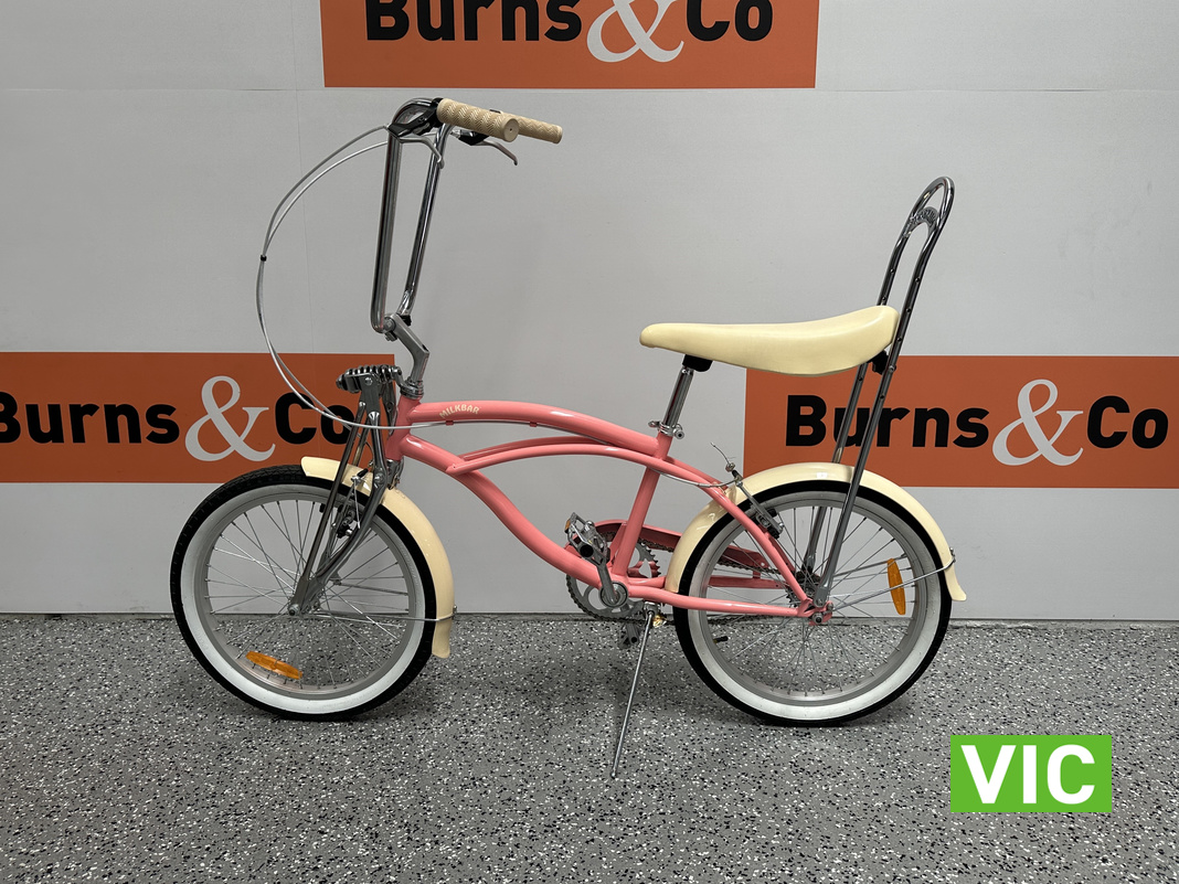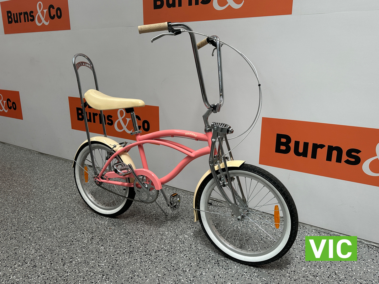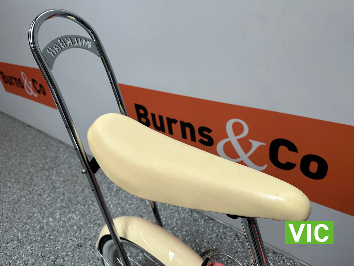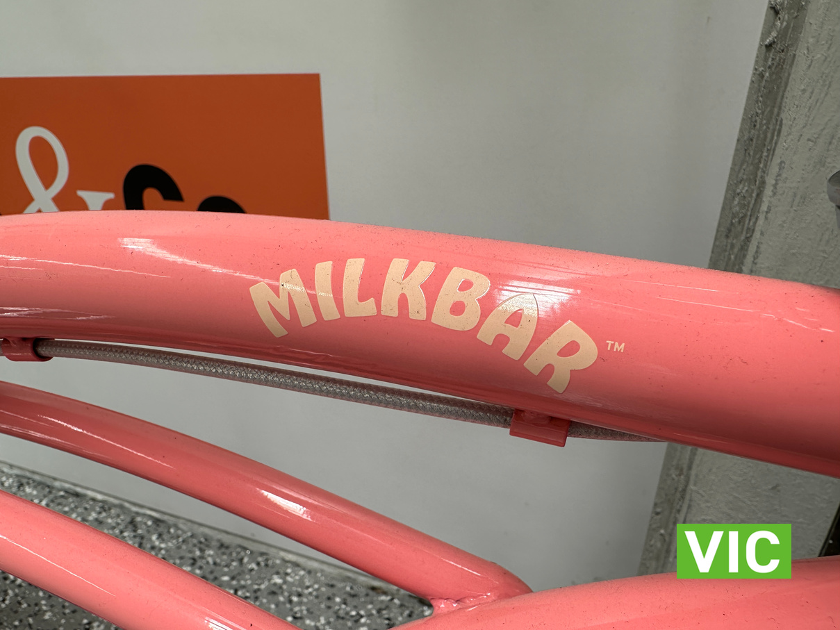 Pretty in pink! This Milkbar Dragster is a nostalgia punch for kids that grew up in the 70’s and 80’s, especially with the banana seat and those iconic high rise handlebars!